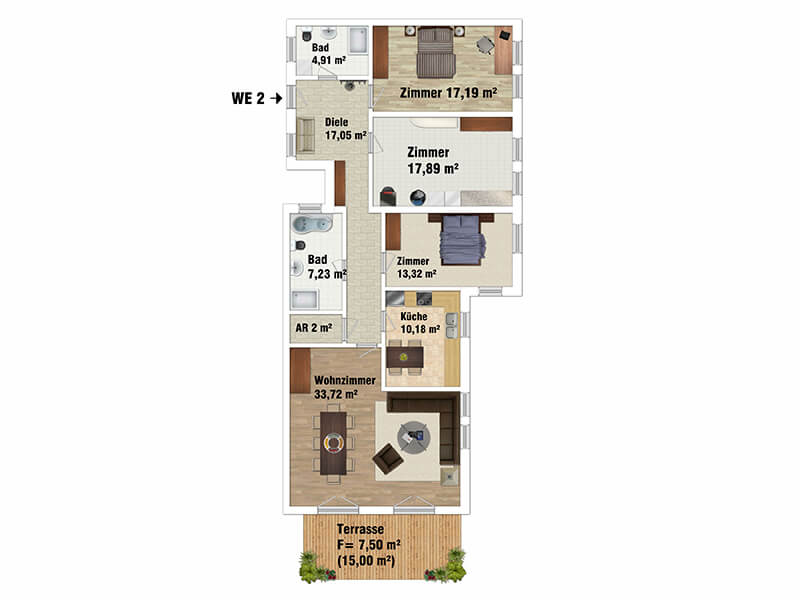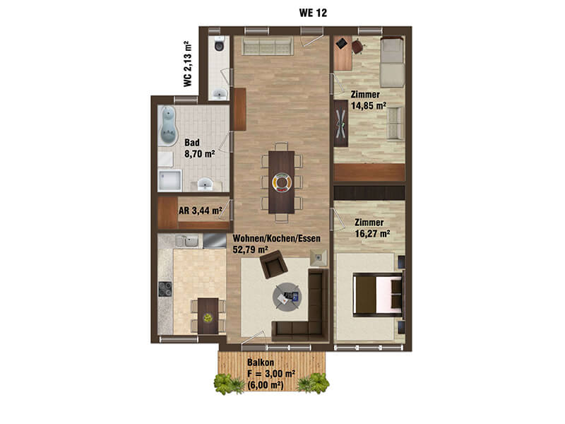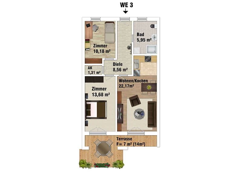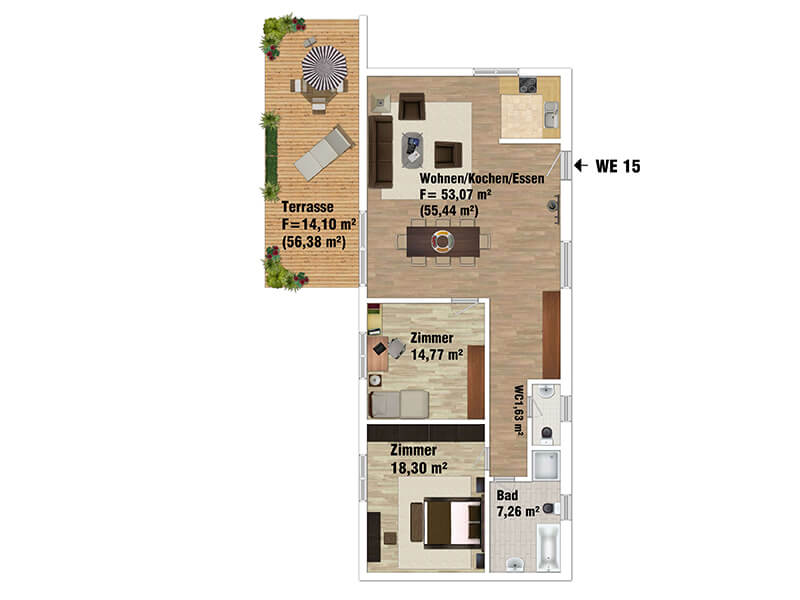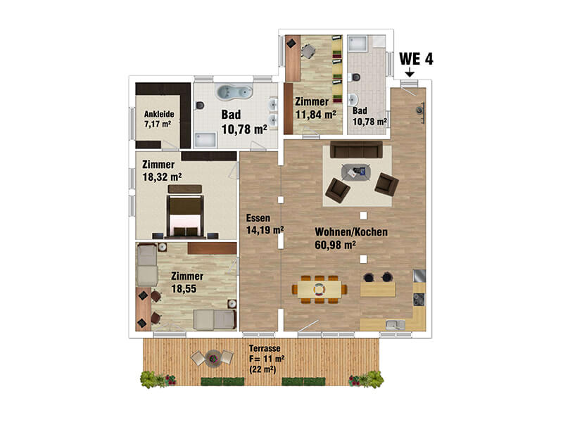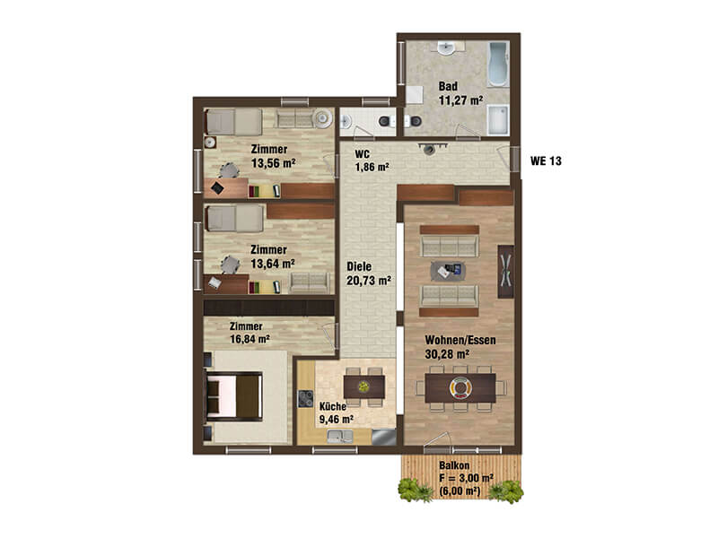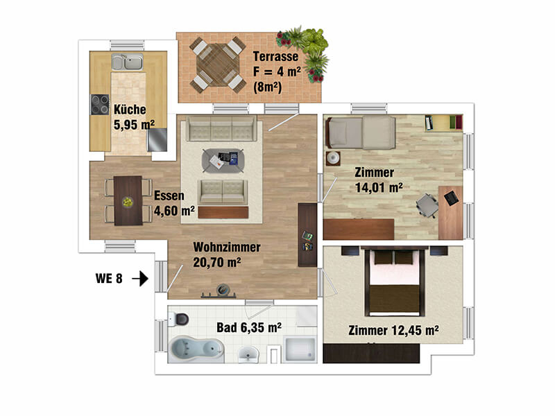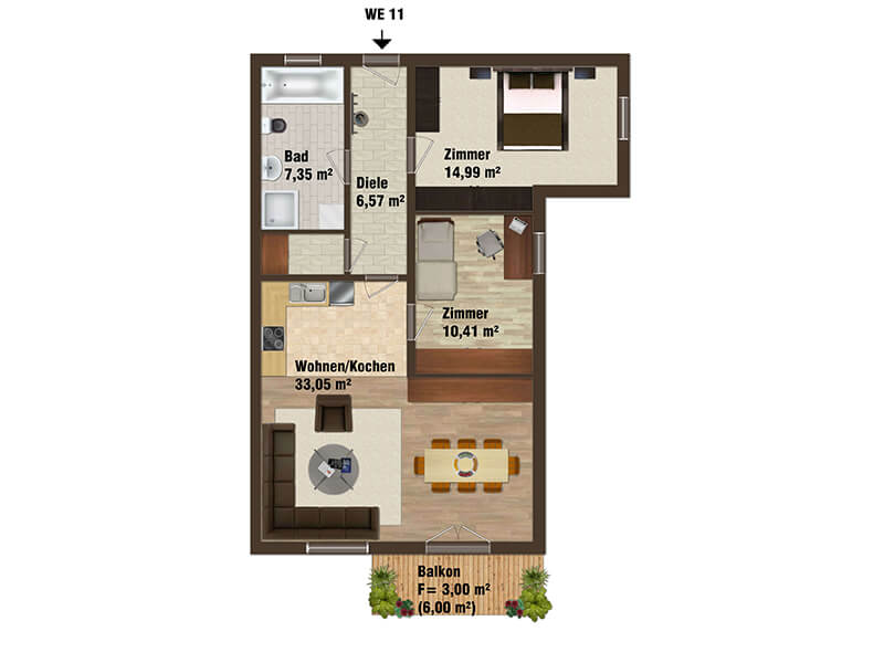 Von 2-Raum bis 4-Raum Wohnung können Sie je nach Bedarf und Verfügbarkeit frei wählen.